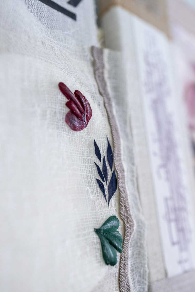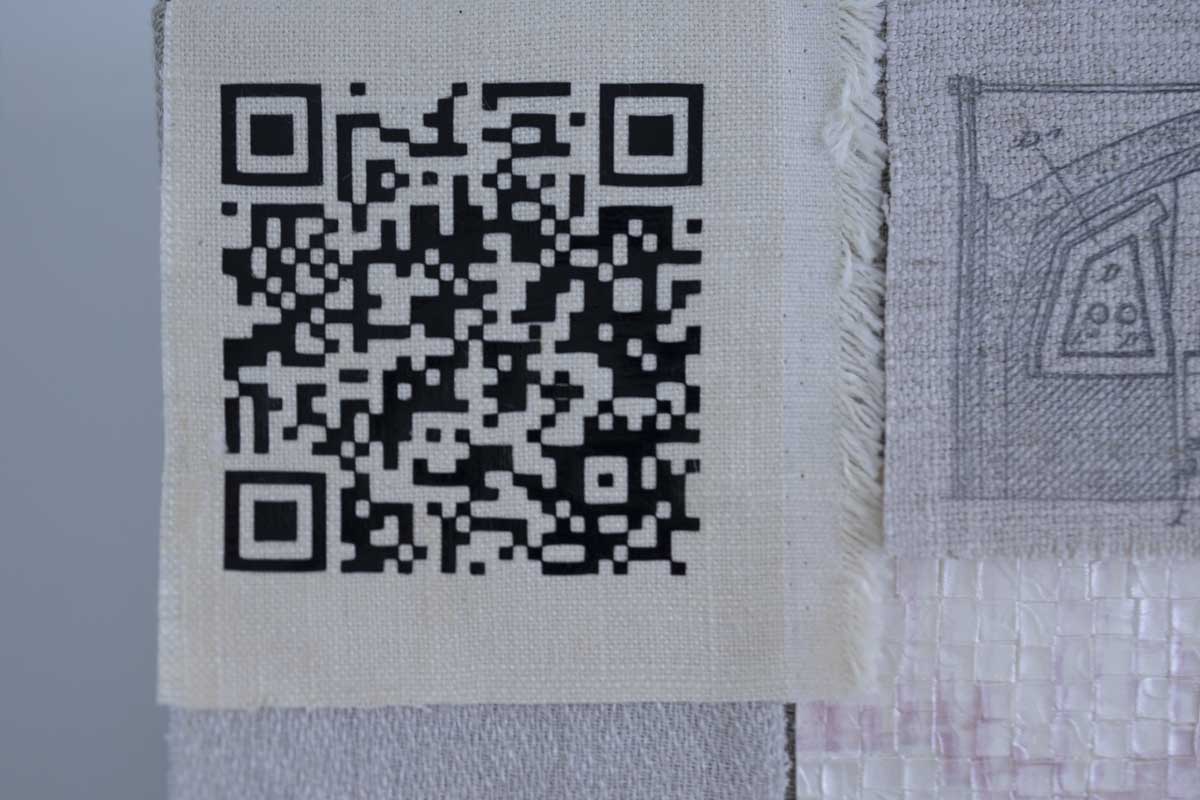 Some materials used in the work were gathered directly from this site. A small stitched QR code links to an online archive on Are.na, where the research process, visual notes and reflections were documented.