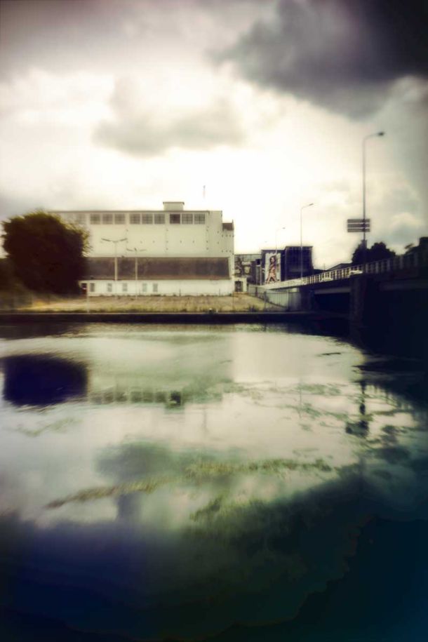The photos used in this project combine images taken on site by the artist with archival photographs of the original factory. These visual sources merge past and present into one layered image.