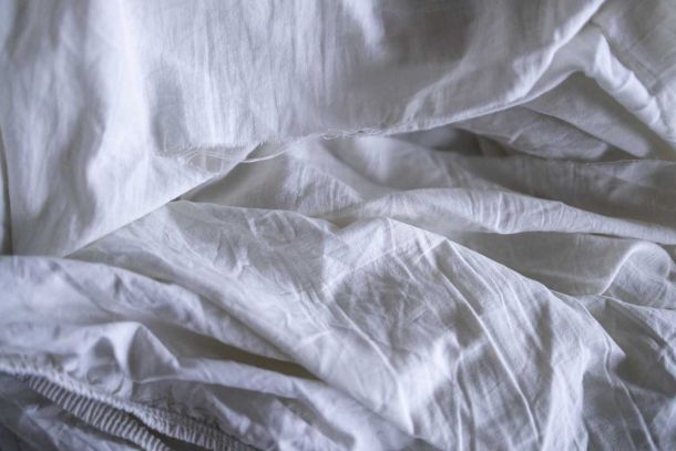 The artwork brings together materials once linked to domestic comfort and industrial production.