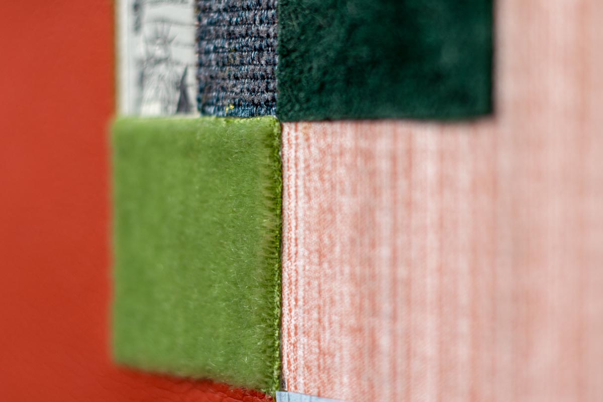 Each piece of fabric or paper functions like a word, with its origin and colour, but recoded through composition. Together, they create a new surface of two overlapping systems: human and artificial, digital and tactile. The mix of strict shapes and rough edges shows how systems like LLMs try to make order out of many small pieces.