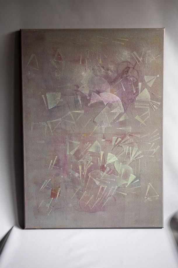 Painting frames, ladies’ shawls, leather scraps, lampshade cut-offs, fabric pieces, interior sample books, woollen yarns, horsehair canvas.