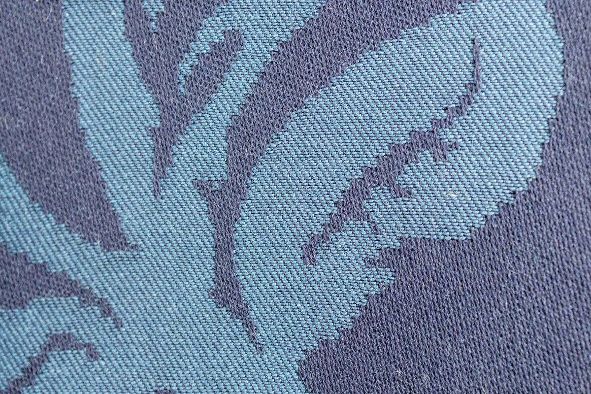 That’s why I translate these histories into contemporary contemporary wall panels and textile artworks. A gold embroidery of a Rococo chair, or the deep-blue palette of a luxury damask textile wall panel, becomes a narrative element in a new work. By re-using and re-framing textiles, I create bespoke wall pieces that carry both aesthetic weight and a credible sustainability story.