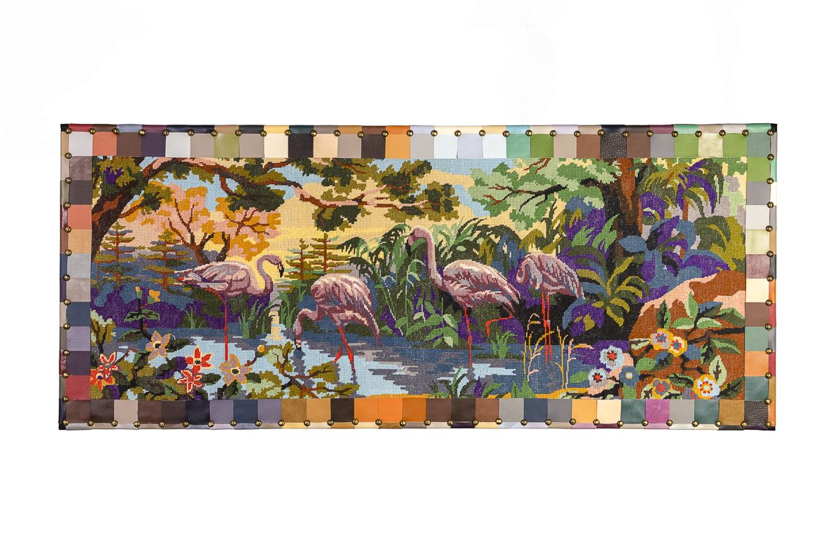 Dit werk maakt deel uit van de serie Erfgoed Materiaalontwerp, waarin bestaande beelden en materialen via textiel upcycling opnieuw worden ingezet binnen hedendaagse interieurs. Het laat ook zien hoe handgemaakt werk en de tijd die daarin zit vaak worden onderschat zodra de oorspronkelijke context verdwijnt.
