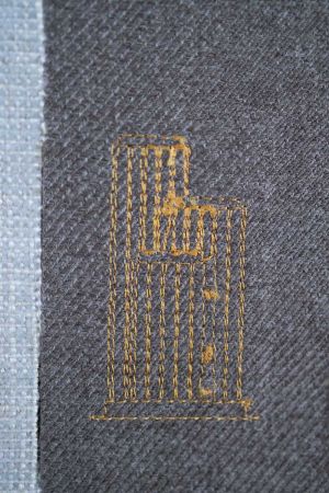 De compositie is opgebouwd uit handgesneden textielfragmenten, gecombineerd met een verlijmde draad die het silhouet volgt. Organische vormen, afgeleid van bladmotieven, vormen een tastbare halo rond de het gezicht, terwijl rechtlijnige textielstroken aan de randen ritme en structuur aanbrengen. Aan de onderzijde zorgen textielstroken met geborduurde architectonische vormen voor een spanningsveld tussen organisch en geconstrueerd.