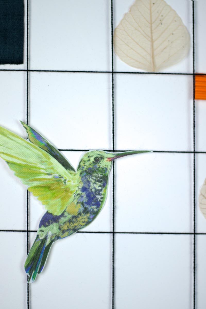 Birds of Paradise is an example of organic textile art that combines craftsmanship with ecological awareness. Built from reclaimed wood, textiles, yarns, paper and lace, the work is assembled within a reused picture frame. Every thread and fibre once belonged to something domestic: a pillowcase, a decorative ribbon, a page from a wallpaper sample book. Together they form a tactile surface that feels alive, a symbol of freedom and self-reliance.