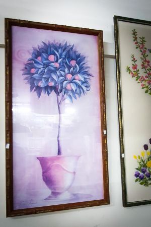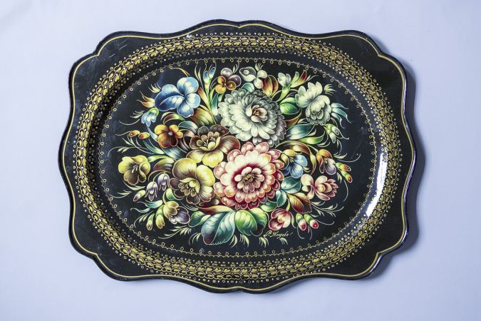 Flora explores nostalgic wall decor through the translation of historic decorative language into contemporary textile form. Inspired by the ornate floral tradition of Russian Zhostovo painting, the work replaces paint and lacquer with layers of reclaimed textiles. Fabric and thread become the medium. Each flower is cut, shaped and stitched by hand, recalling the luminous patterns once found on painted metal trays.