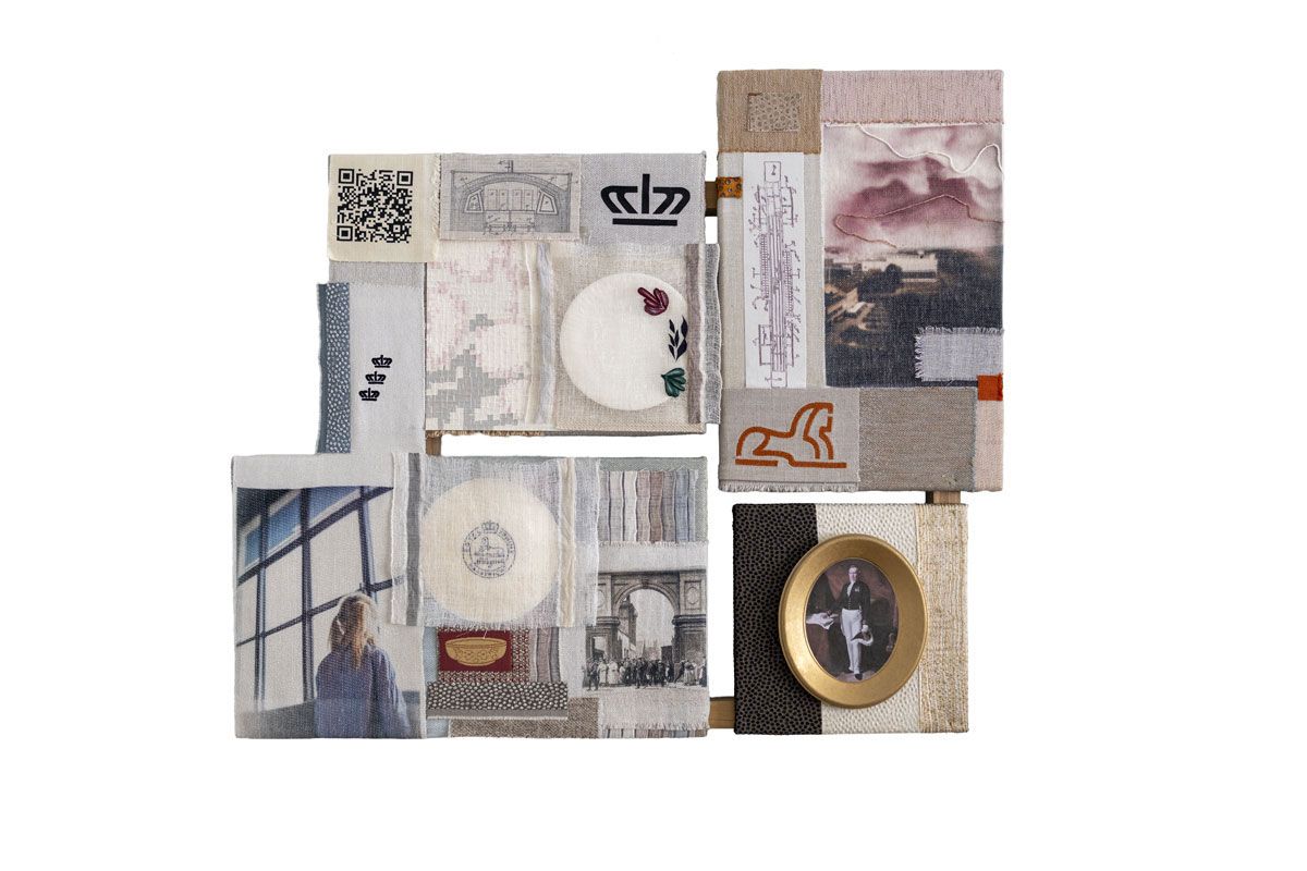A small QR code is stitched into the work links to an online archive on Are.na where I collect research fragments, visual notes and reflections behind this piece.